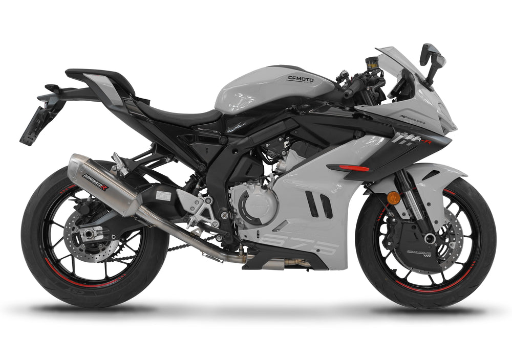 Dominator full system built for CF MOTO 675 SR-R (2024-2026). Supplied with a removable dB killer insert.