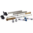 The KYB closed cartridge conversion kit for the WP AER fork. Only the outer tubes remain on your WP fork. All other parts will be replaced with KYB parts. The fork receives two closed cartridges with springs, the complete damping is replaced with KYB parts and CNC milled feet are installed as fork feet. By installing the KYB conversion kit you get a fork with a top function, the compression and rebound can be adjusted very well. The response behavior improves enormously and the fork also has sufficient punch reserves.