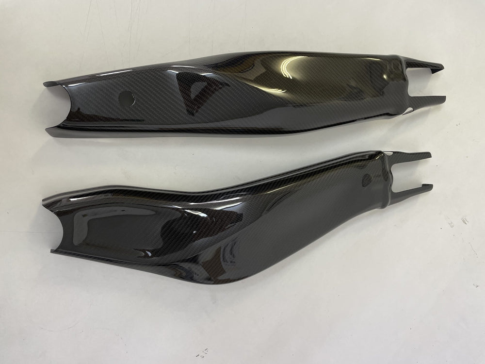 Set contains left and right carbon fiber swingarm covers.