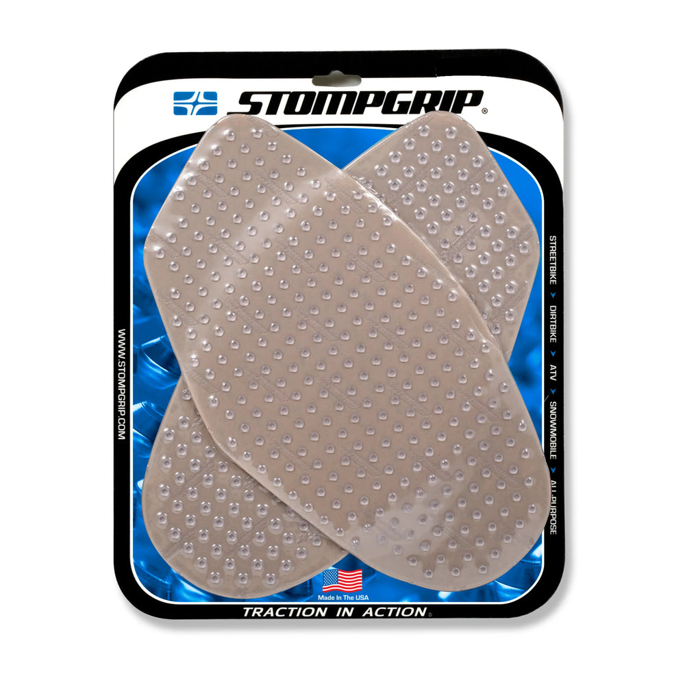 These are a revolution in rider control! Stomp is a clear moulded pad that fits on your tank. The traction design provides unparalleled grip to increase lower body stability and reduce fatigue. These are an absolute must for racers, particularly for gruelling road racing conditions, but also widely used on road and track days alike for the sheer benefits they provide.