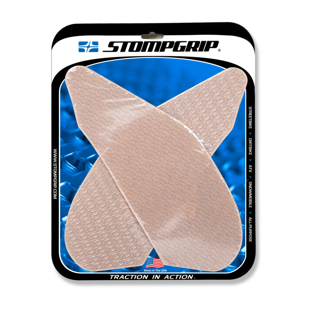These are a revolution in rider control! Stomp is a clear moulded pad that fits on your tank. The traction design provides unparalleled grip to increase lower body stability and reduce fatigue. These are an absolute must for racers, particularly for gruelling road racing conditions, but also widely used on road and track days alike for the sheer benefits they provide.