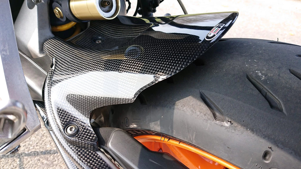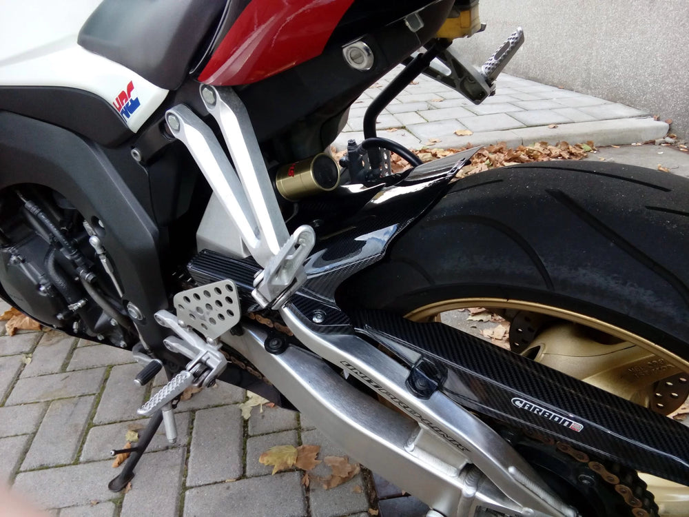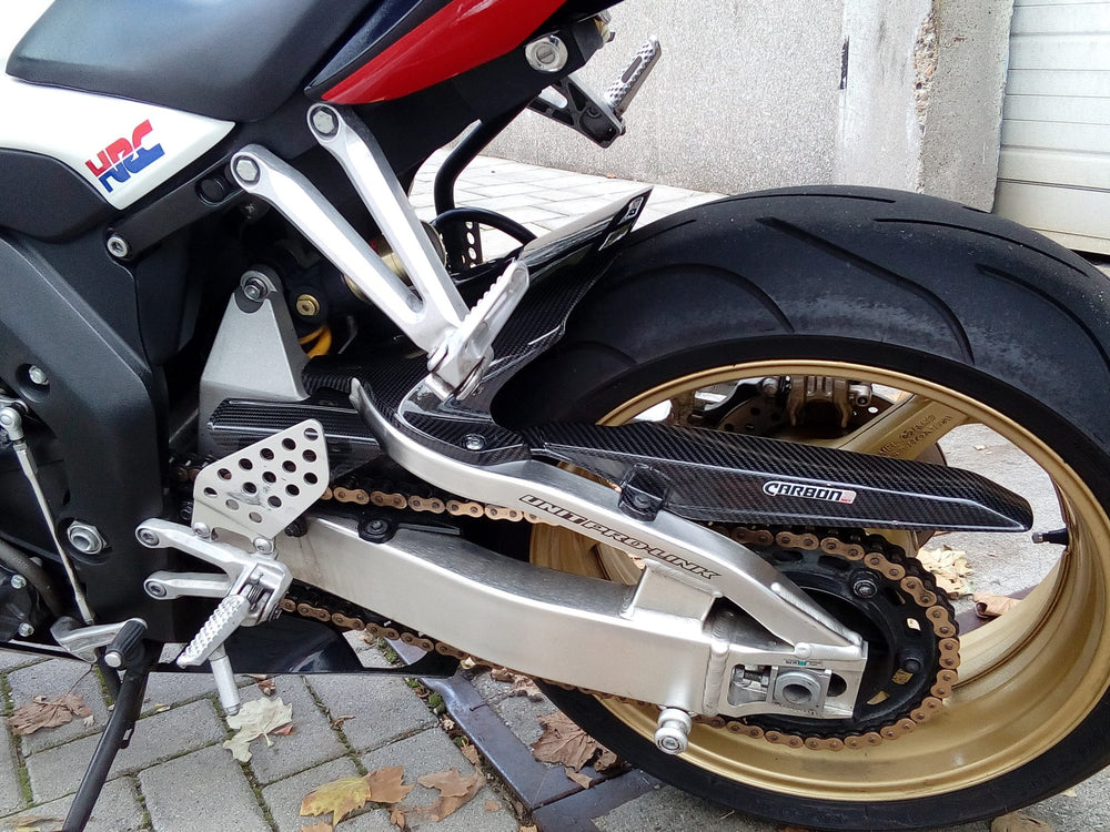 HONDA CBR 1000RR 2004-2007 Carbon Fiber Rear Hugger by Carbon2race is a direct replacement for the original part and contributes mainly to the great appearance, weight saving on the motorcycle and a higher stiffness of the parts.